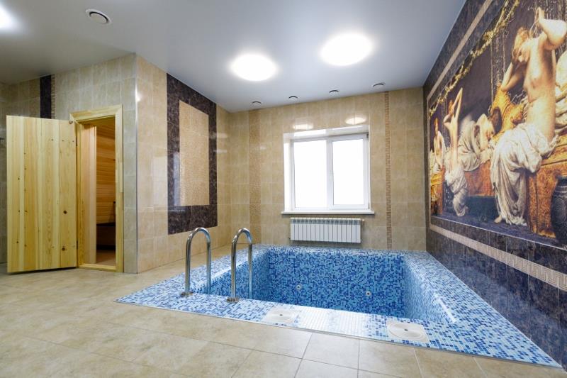 Бассейны скиммерные с подогревом, выполнены в мозаике, оборудованы ультрафиолетовыми установками и подсветкой